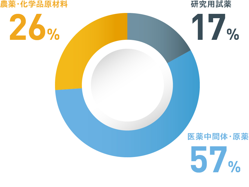 中国市場に特化した化学品の専門商社として研究用試薬、医薬中間体・原薬、農薬・化学品原材料を事業の三本柱として展開しています。